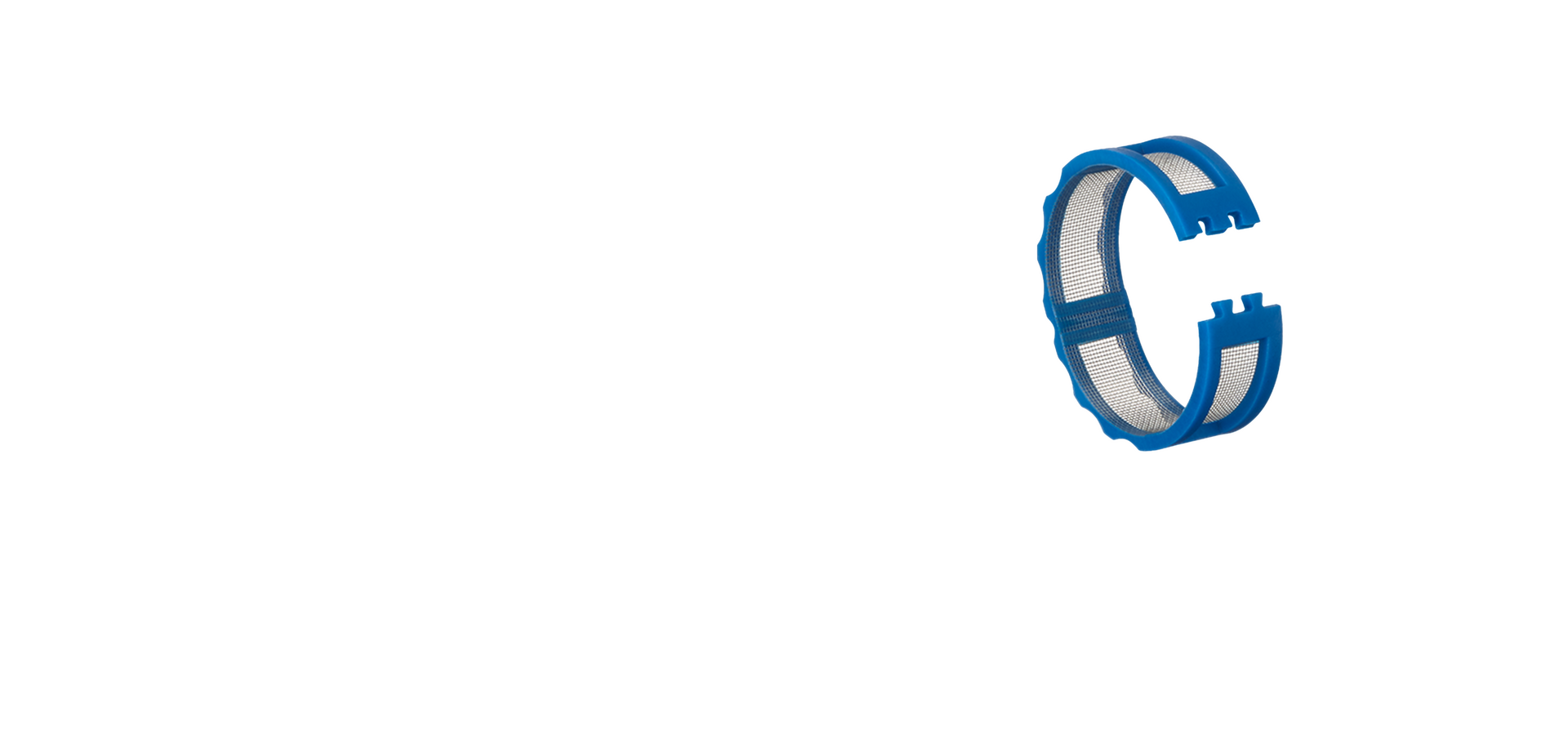 Offene Ringfilter aus Kunststoff für einfache Montage.