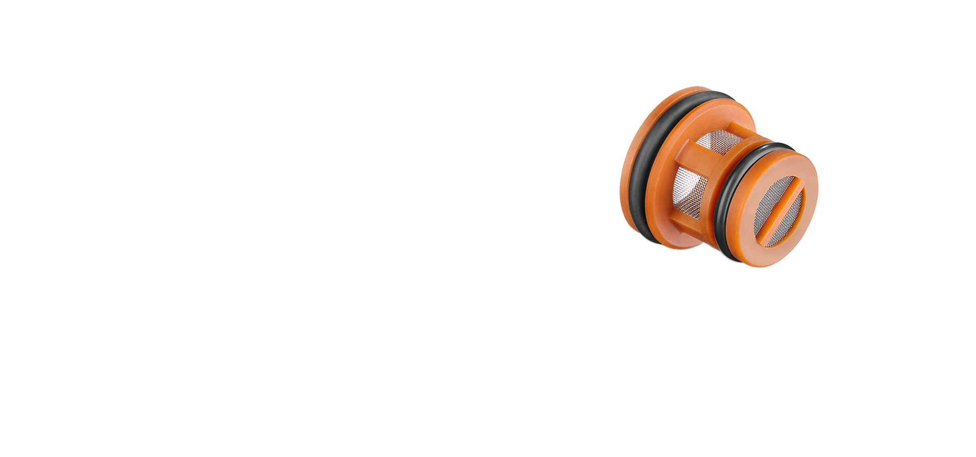 Ventilgehäuse mit Sieb und Dichtfunktion.